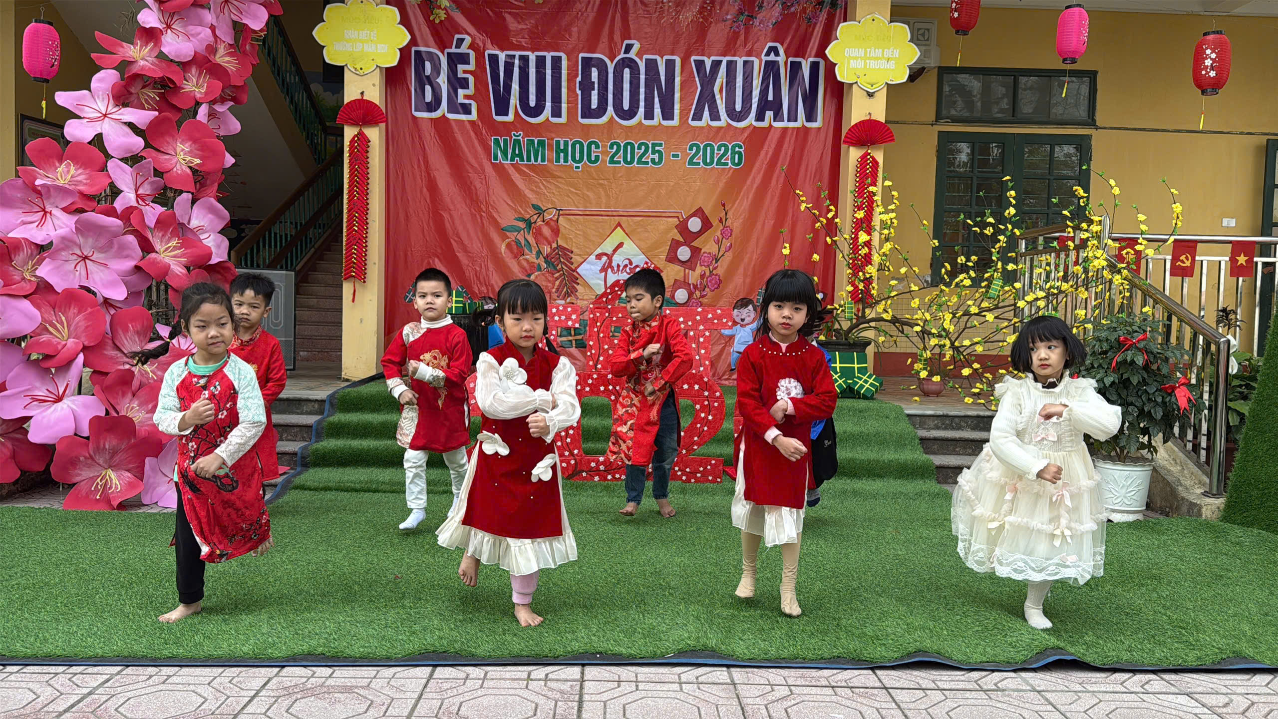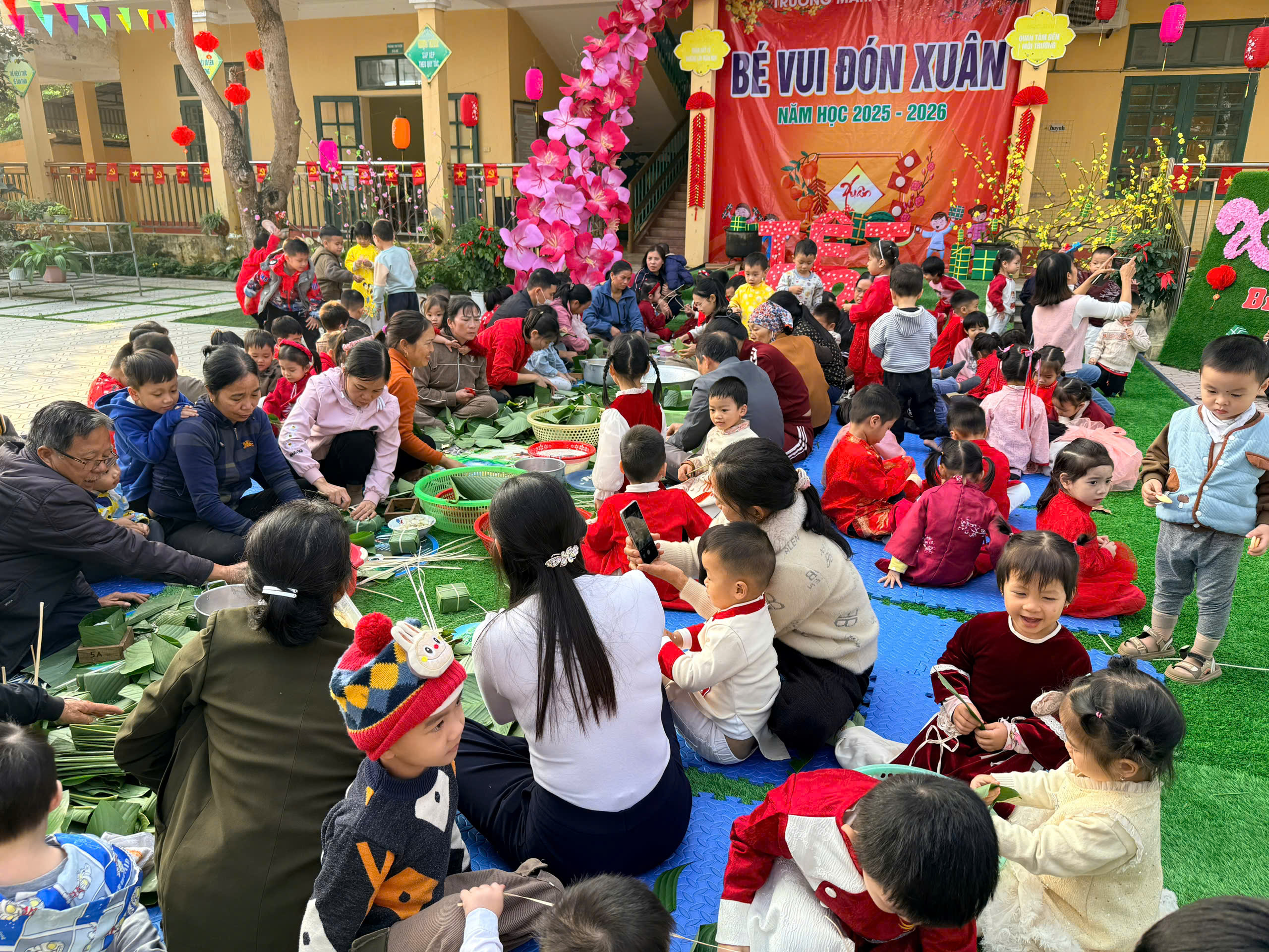 Nhằm mang đến cho các bé một mùa xuân ý nghĩa, đồng thời giúp trẻ hiểu và trải nghiệm những nét đẹp văn hóa truyền thống của dân tộc, nhà trường đã tổ chức chuỗi hoạt động “Bé vui đón xuân” trong 2 ngày, với nhiều nội dung phong phú, hấp dẫn, phù hợp với lứa tuổi mầm non.