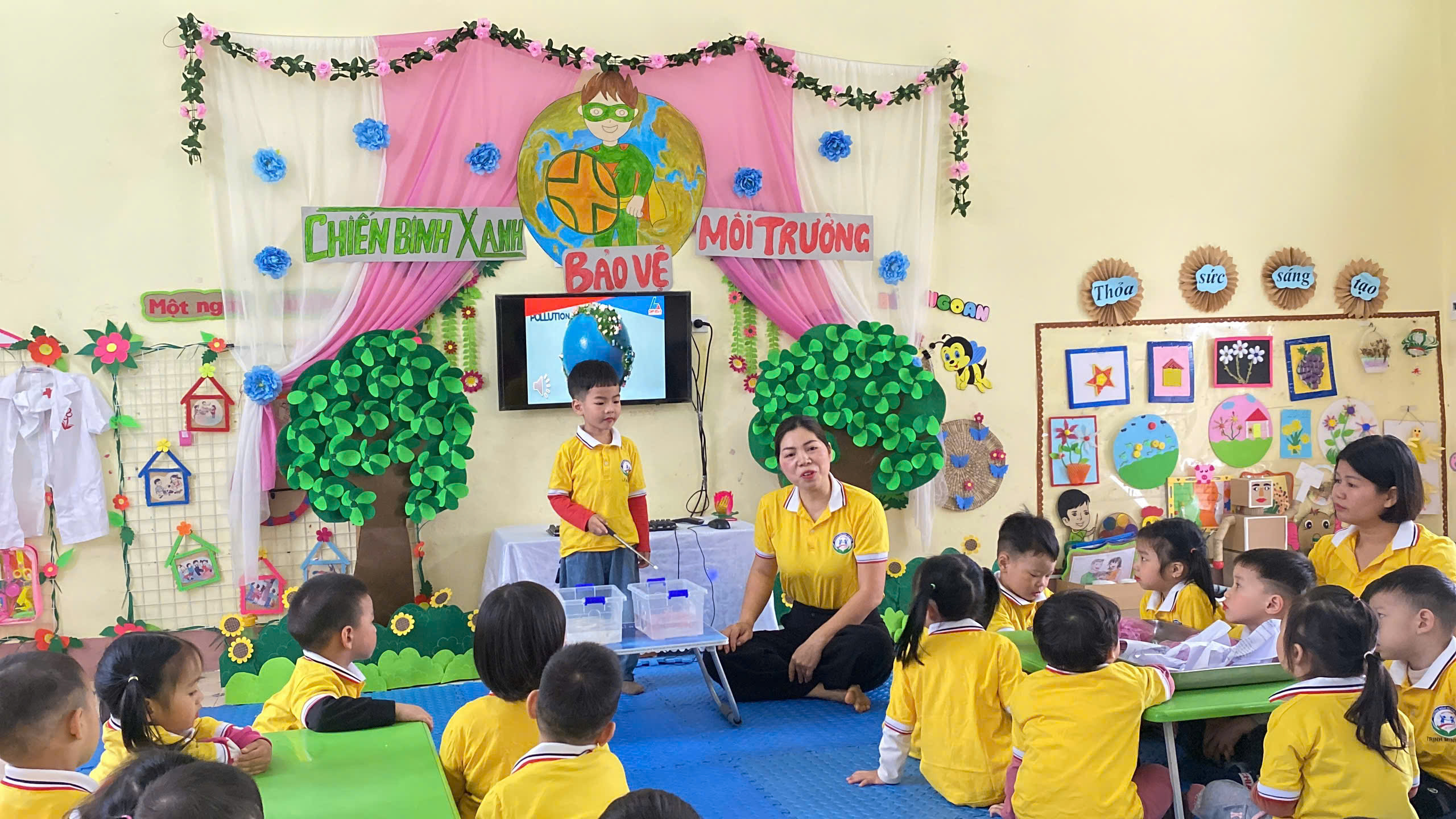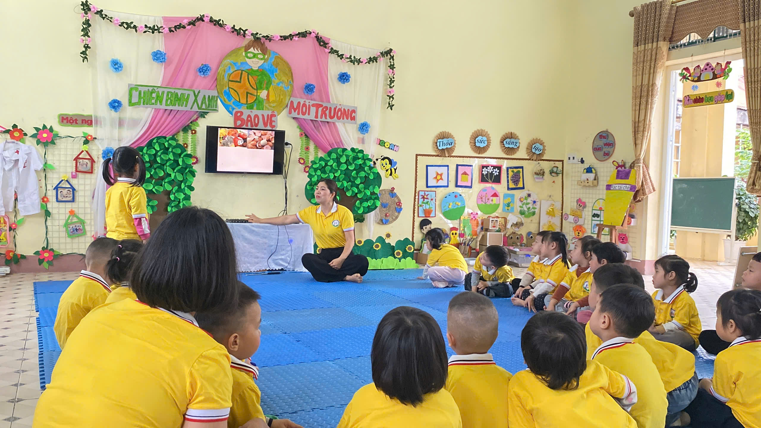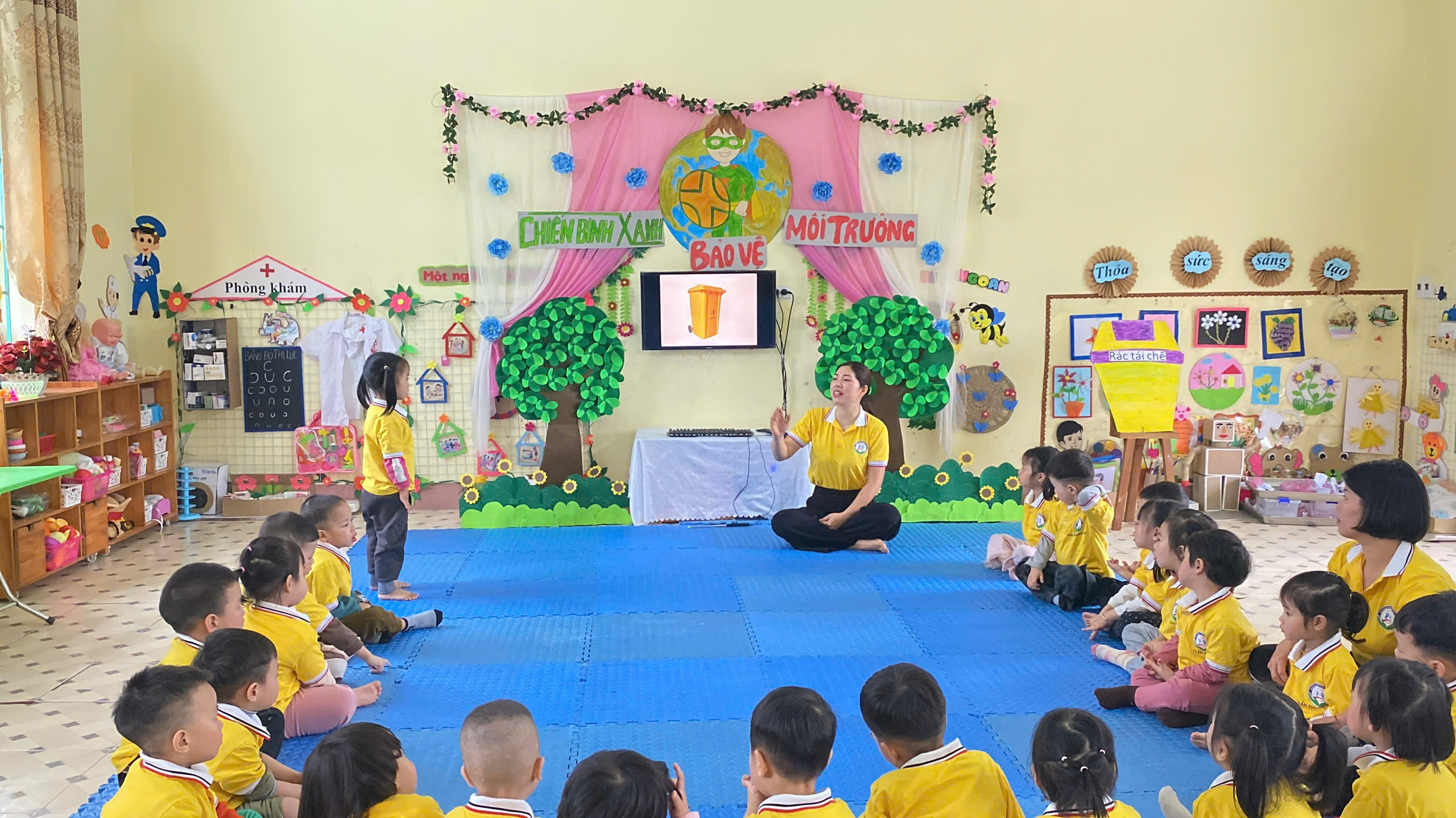Trong buổi sinh hoạt lần này, tổ chuyên môn tập trung vào đề tài: “Giáo dục bảo vệ môi trường cho trẻ mầm non (mẫu giáo 3-4 tuổi)”, thuộc lĩnh vực phát triển Tình cảm và Kỹ năng xã hội. Hoạt động được xây dựng với mục tiêu giúp trẻ bước đầu hình thành nhận thức và những hành vi phù hợp trong việc giữ gìn, bảo vệ môi trường xung quanh như: không xả rác bừa bãi, biết bỏ rác đúng nơi quy định, biết yêu quý và chăm sóc cây xanh.