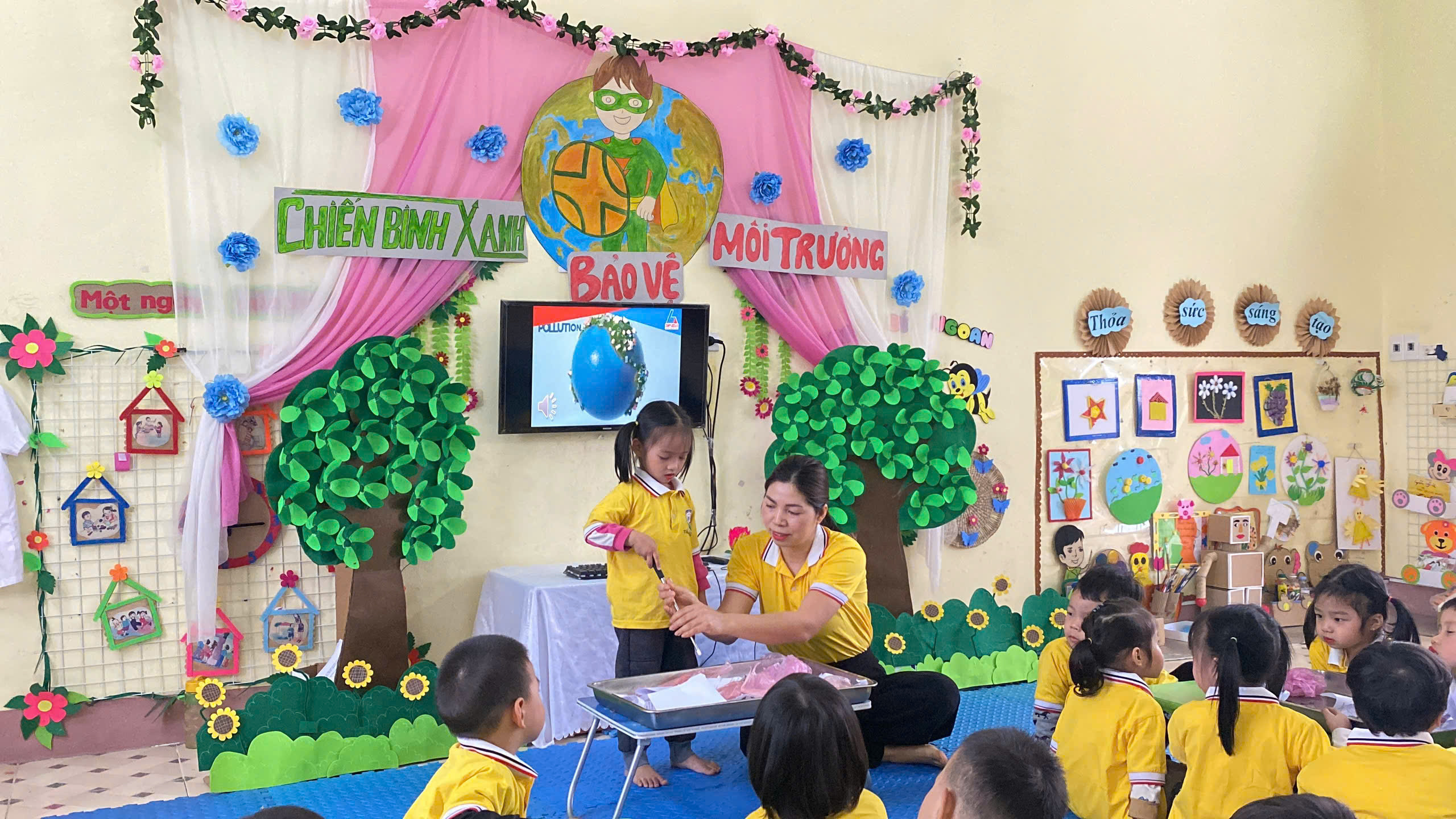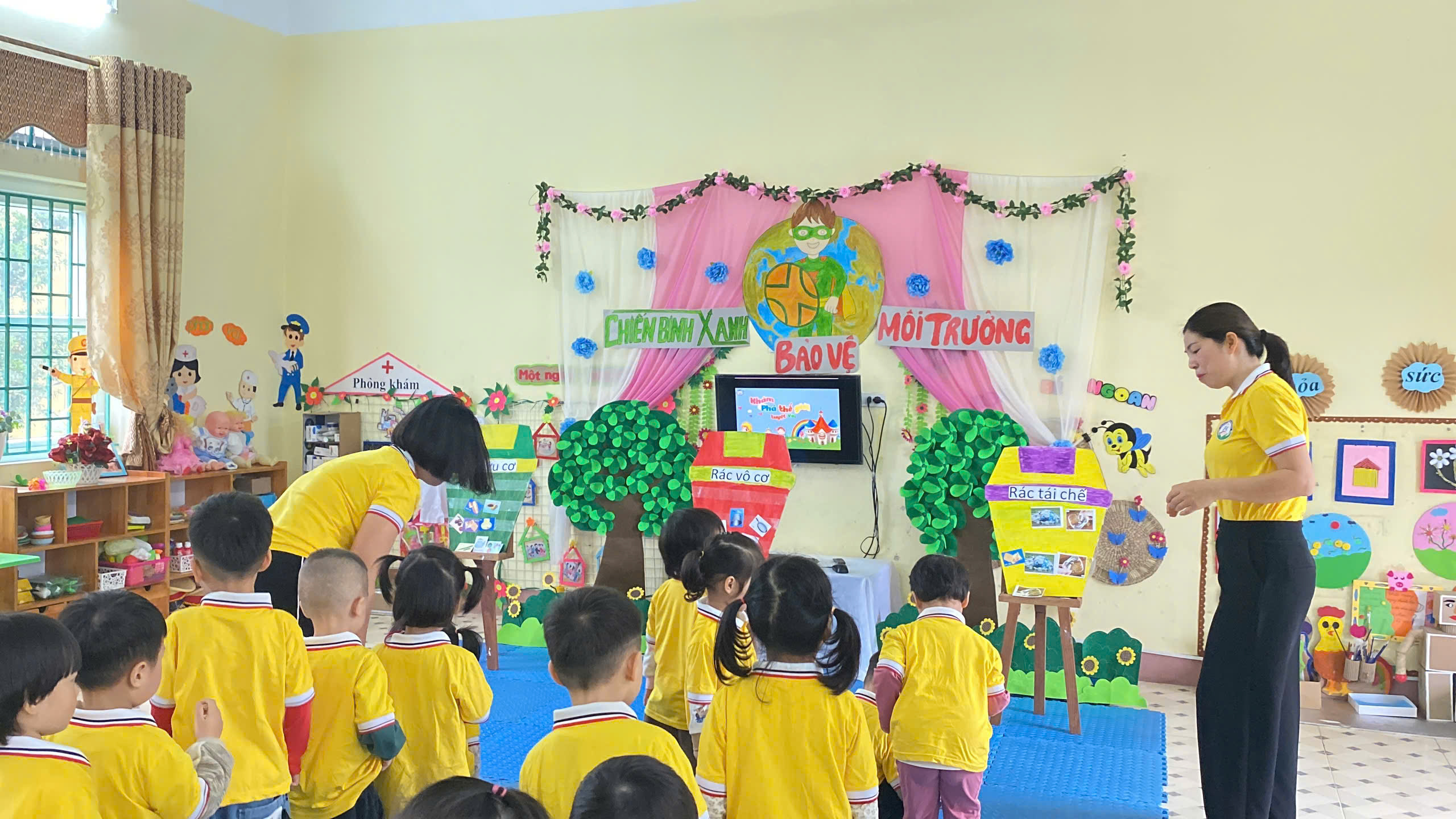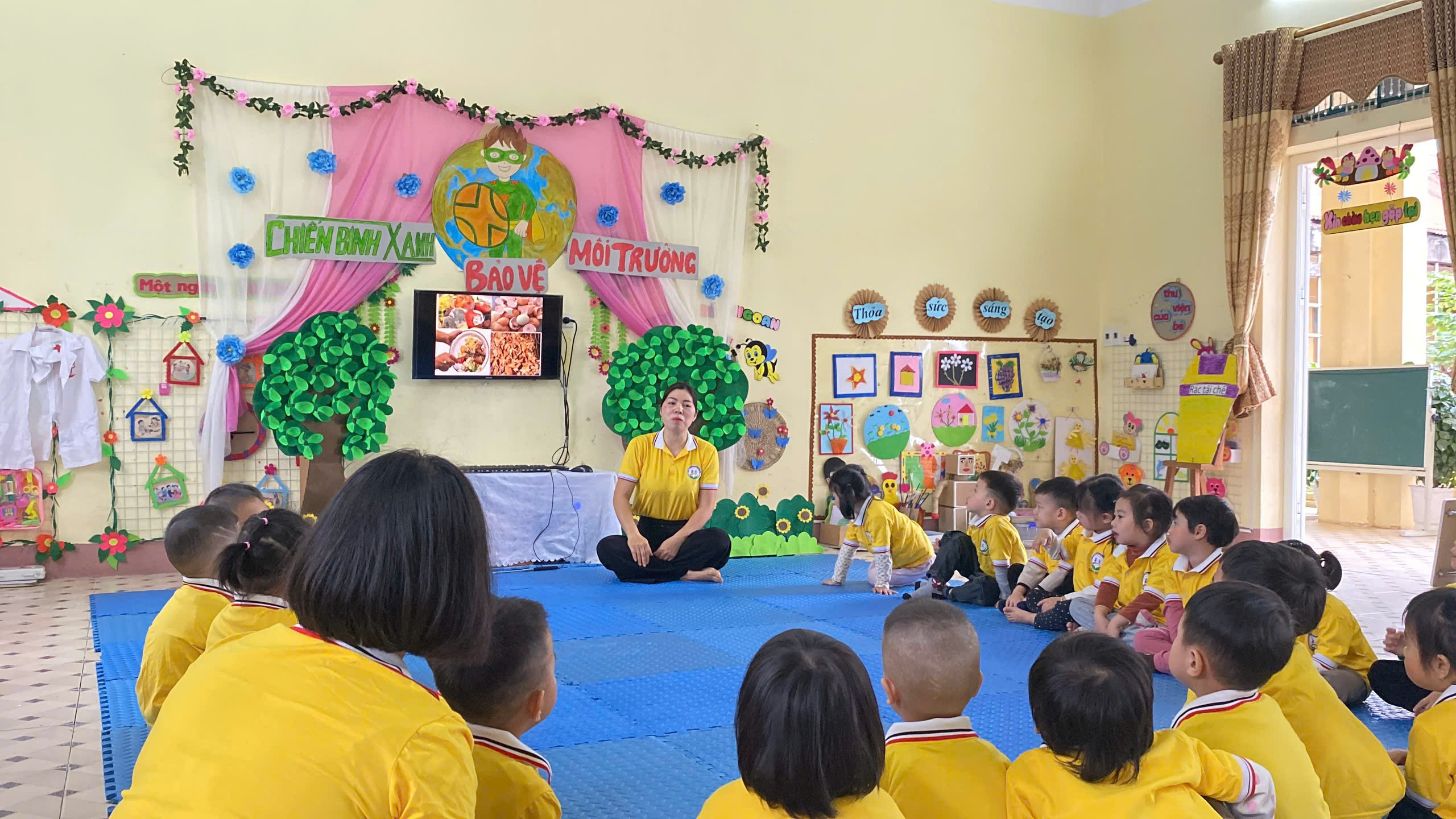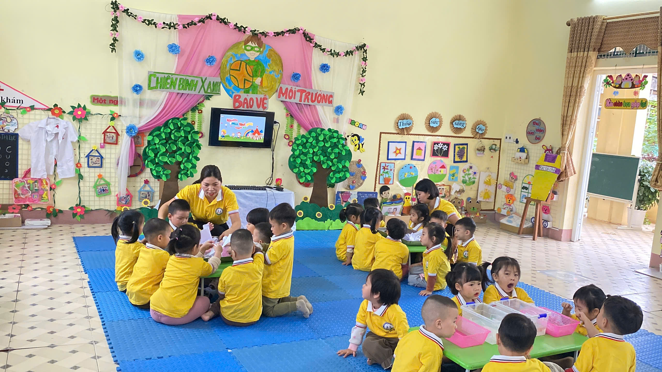 Trong buổi sinh hoạt lần này, tổ chuyên môn tập trung vào đề tài: “Giáo dục bảo vệ môi trường cho trẻ mầm non (mẫu giáo 3-4 tuổi)”, thuộc lĩnh vực phát triển Tình cảm và Kỹ năng xã hội. Hoạt động được xây dựng với mục tiêu giúp trẻ bước đầu hình thành nhận thức và những hành vi phù hợp trong việc giữ gìn, bảo vệ môi trường xung quanh như: không xả rác bừa bãi, biết bỏ rác đúng nơi quy định, biết yêu quý và chăm sóc cây xanh.