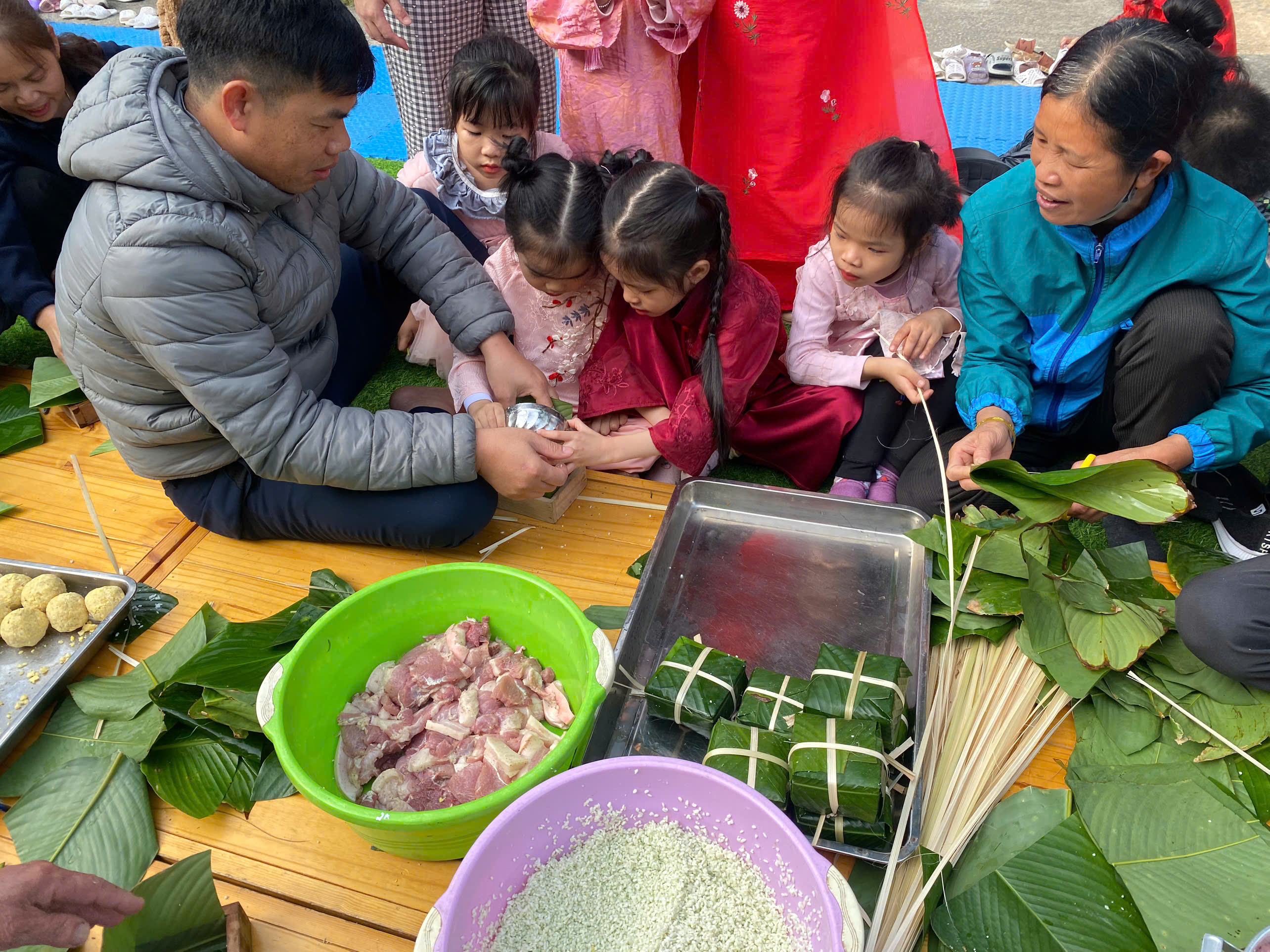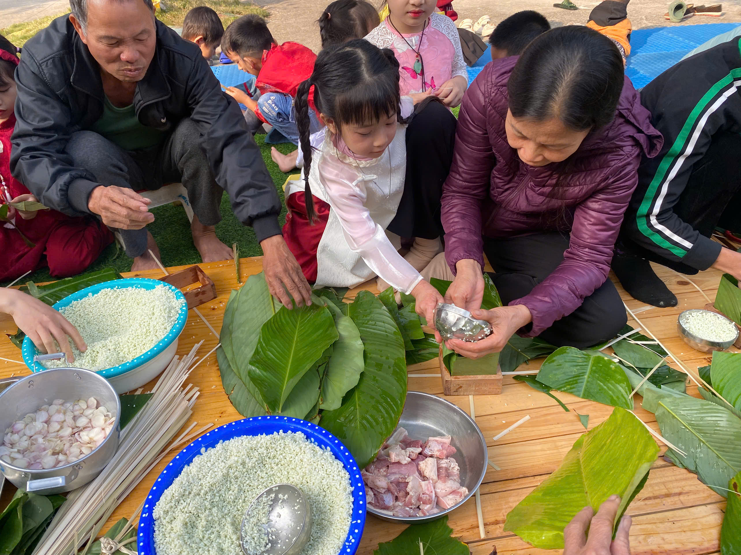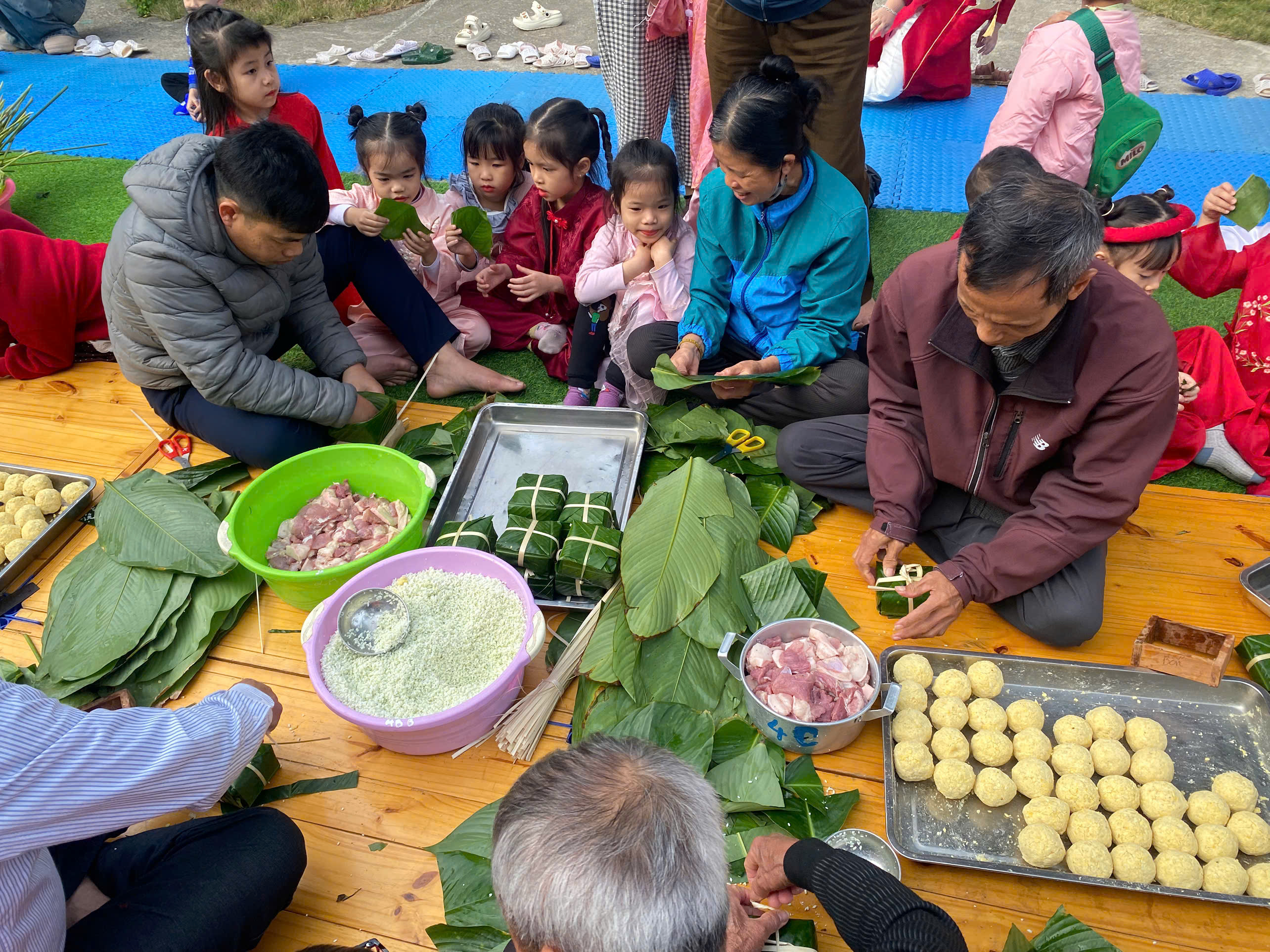TRƯỜNG MẦM NON KIM THÁI TỔ CHỨC HOẠT ĐỘNG TRẢI NGHIỆM “BÉ VUI ĐÓN XUÂN – GÓI BÁNH CHƯNG XANH”